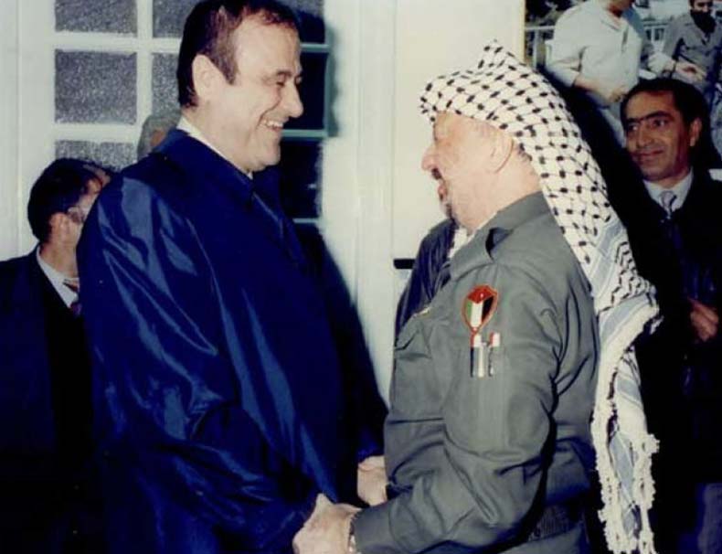 ערפאת וסגן נשיא סוריה רפעת אל-אסד: ״ערפאת ביקר שוב ושוב בבירות ערביות והדגיש את ייצוגו כנציג של ׳חרב האומה הערבית׳״